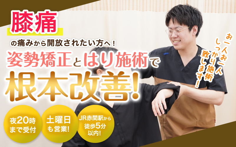膝周囲の不調は毎日ではないことがありますが、『今日はマシなんですが痛い時があります』というご相談でも大丈夫です。足や膝、股関節、骨盤の歪みなど拝見するだけでも痛む箇所や原因を確認し施術をさせていただきます。