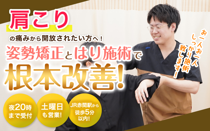 肩こりは病名ではなく首や肩周囲の痛みや不快な症状や状態の総称で「原因」は様々で『いつものことだから』と軽く考えずにご来院をおすすめします。